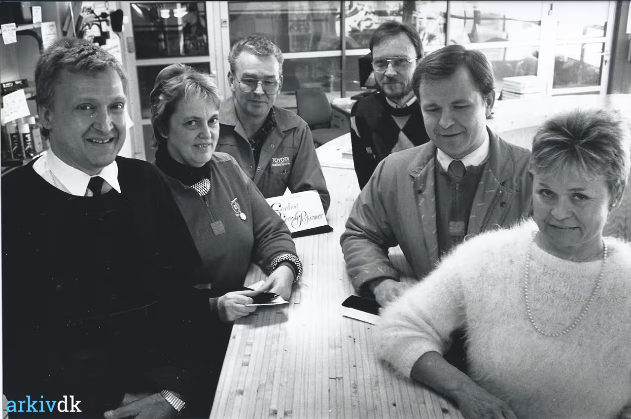 Beskrivelse Fra venstre ses Leif Pedersen, Nancy Hansen, Arne Petersen, Niels Hoffman, Michael Pedersen og Stine Pedersen