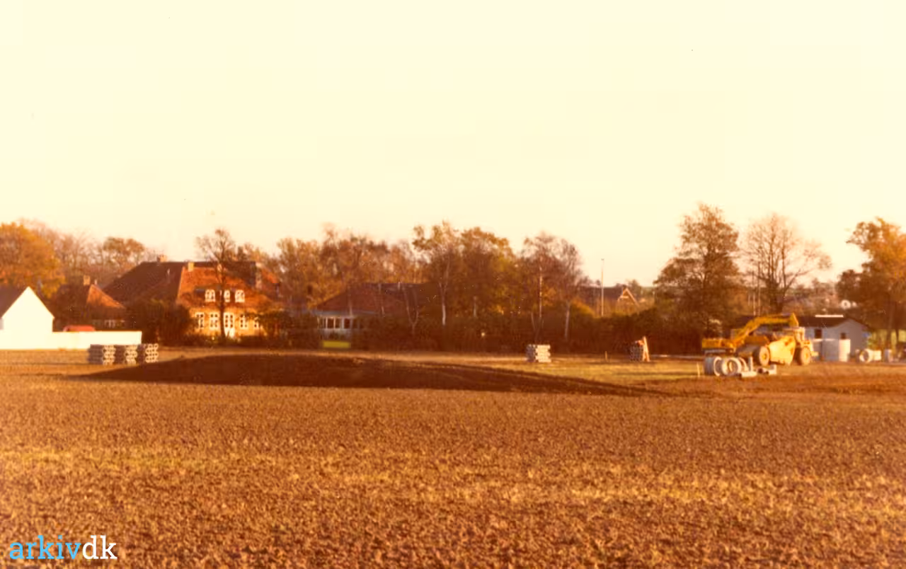 Gislinge Skole med byggerod fra halbyggeri foran, 1980