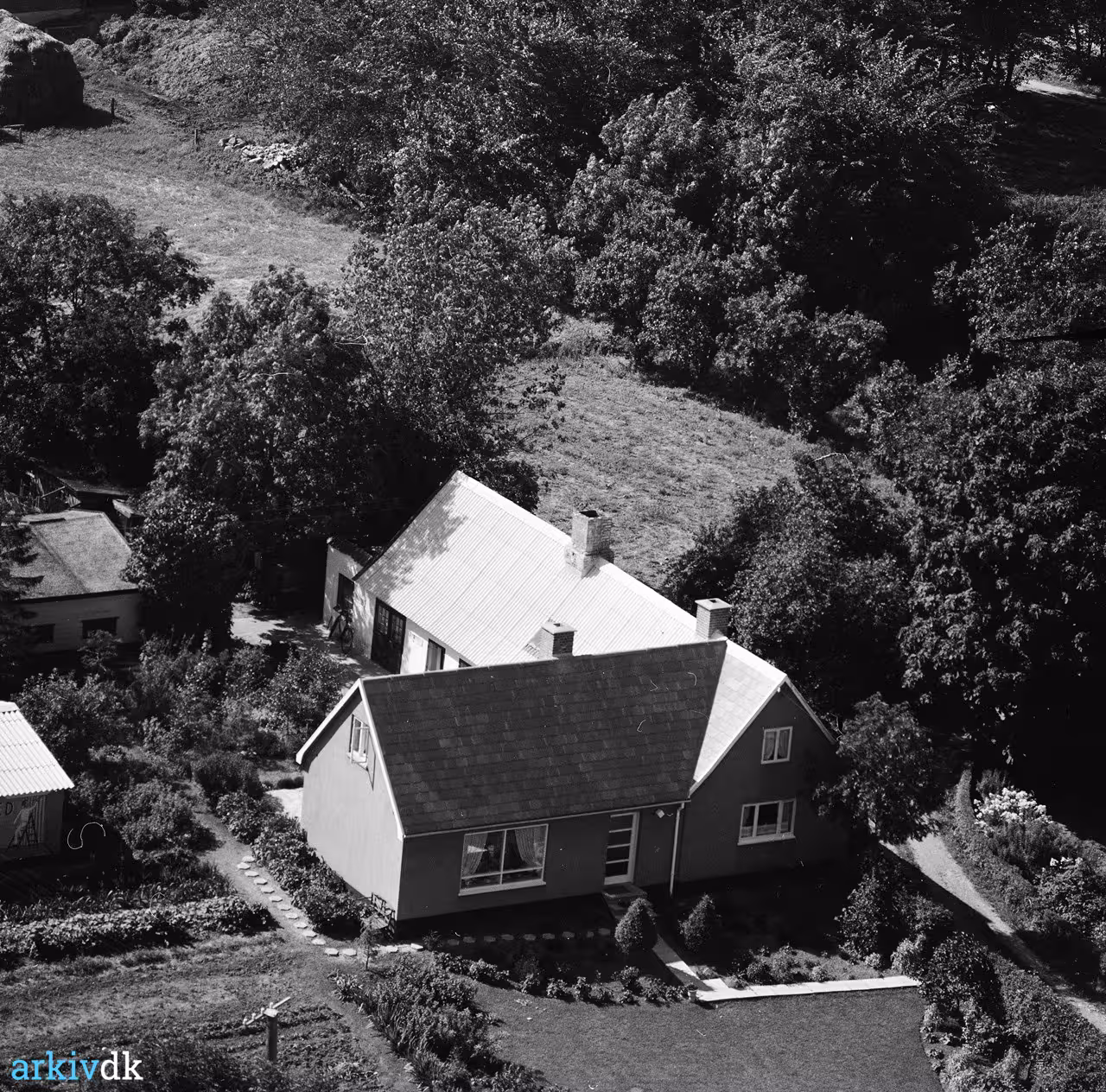 Maler Jørgensens hus, Tune Bygade 24, Tune. Luftfoto