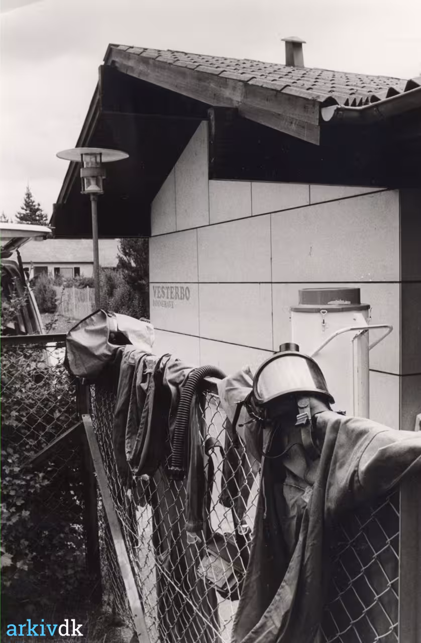 I forgrunden ses renovationsarbejdernes tøj og beskyttelsesudstyr.