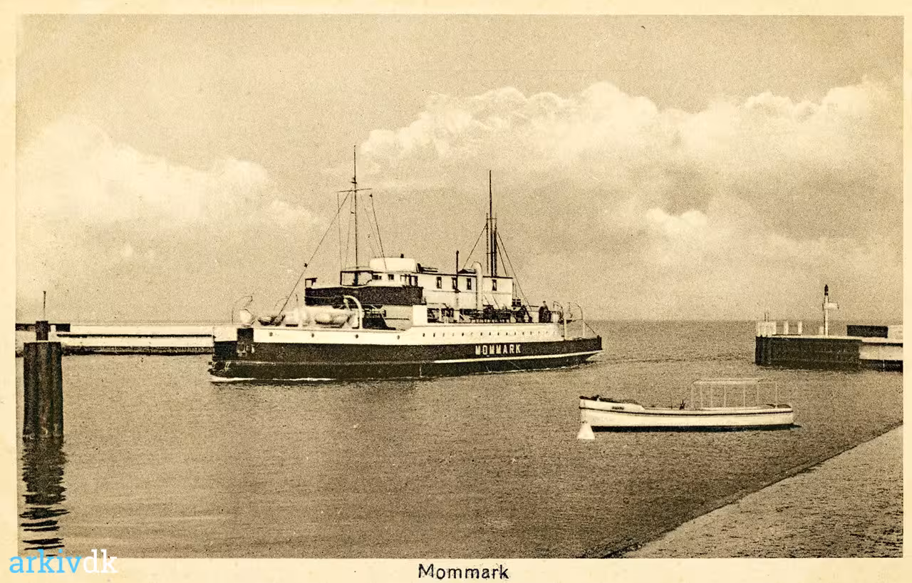 | Beskrivelse | Postkort med motiv af færgen "Mommark" i Mommark havn. Udgivet af A./S. Mommark Færgegaard. |