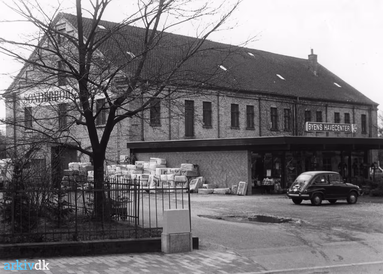 Fotografi af bygningen Helgolandsgade 9 i Sønderborg. Bygningen tjente i årene 1870-1884 som materielbygning for artilleriet i "Festung Sonderburg-Dyppel". Da fæstningsanlægget var på sit højeste under den tysk-franske krig 1870-71, var der en besætning på i alt 14.000 mand.
