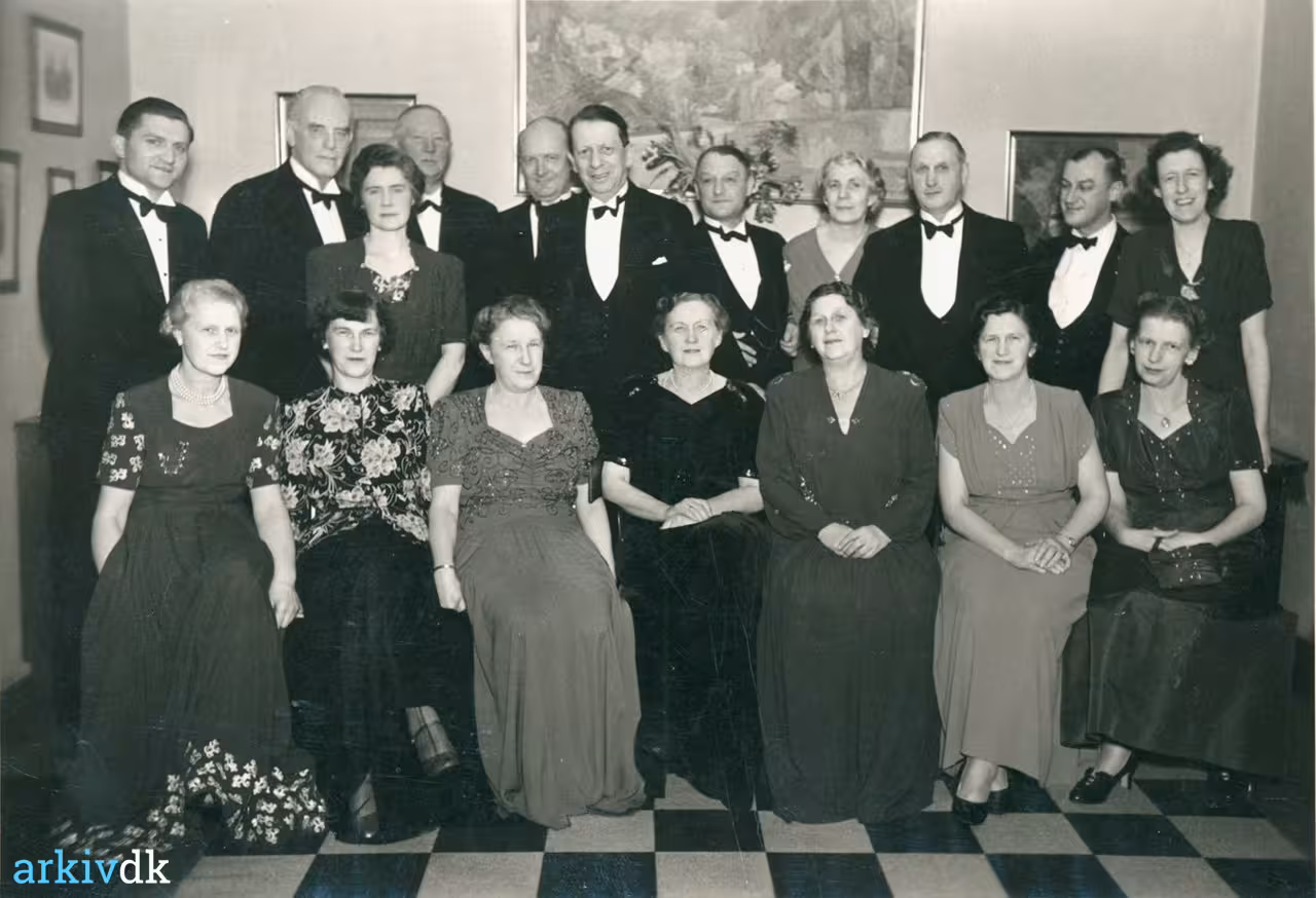 Siddende fra venstre: 1. Ruth Hanssen (f. 22. oktober 1903 i Aabenraa, d. 5. januar 1984 på Frederiksberg) 2. Thyra Birgitte Hanssen (f. 22. april 1898 i Aabenraa, d. 14. september 1978 i Glostrup) - ansat i udenrigsministeriet, senere Danmarks Radios presse- og udlandsafdeling 3. Astrid Margrethe Hanssen (f. 25. august 1894 i Aabenraa, d. 6. maj 1950 i Aabenraa) 4. Anne Marie Hanssen (f. 25. januar 1889 i Sønderborg, d. 22. marts 1972 i Tønder) 5. Ingeborg Hanssen (f. 17. juli 1891 i Sønderborg, d. 24. marts 1972 i Aabenraa) - folketingsmedlem 6. Helga Christine Hanssen (f. 23. oktober 1896 i Aabenraa, d. 15. marts 1981 i Aabenraa) 7. Eva Margrethe Helene Hanssen (f. 21. december 1899 i Aabenraa, d. 6. februar 1967 på Frederiksberg) - sekretær for faderen, senere ansat i Nationalbanken i København Stående fra venstre: 1. Ukendt 2. Kresten Refslund Thomsen (f. 19. august 1884 i Broager, d. 10. januar 1960 i Aabenraa) - amtmand, gift med Ingeborg Hanssen 3. Ellen Marie Hanssen f. Rasbech (f. 18. december 1905 i Gjerlev Sogn, d. 28. november 1974 i Aabenraa) - byrådsmedlem i Aabenraa, gift med Ejnar Bjørn Hanssen 4. Kristen Hansen (f. 25. september 1893 i Hejls Sogn, d. 22. maj 1952 i Silkeborg) - direktør og konsul, gift med Astrid Margrethe Hanssen. 5. Ernst Lauritz Olaf Priemé (f. 10. juli 1902 i Skt. Matthæus Sogn, Kbh., d. 9. juni 1977 i Gentofte) - chefredaktør på Politiken, gift med Ruth Hanssen 6. Sophus Thomsen (f. 6. august 1881 i Haderslev, d. 1. september 1963 i Tønder) - direktør, gift med Anne Marie Hanssen 7. Otto Jesper Tofft (f. 6. januar 1894 i Aabenraa, d. 31. januar 1966 i Aabenraa) - dyrlæge, gift med Helga Christine Hanssen 8. Margrethe Marie Hanssen f. Hansen (f. 29. september 1893 i Sønder Hostrup, Ensted Sogn, d. 17. september 1979 i Tinglev) - gift med Peter Christian Hanssen 9. Peter Christian Hanssen (f. 25. november 1892 i Sønderborg, d. 17. april 1978 i Bjolderup Sogn) - ejer af gården Nygård ved Bolderslev Skov 10. Ejnar Bjørn Hanssen (f. 8. september 1902 i Aabenraa, d. 29. oktober 1978 i Aabenraa) - redaktør på Hejmdal 11. Ukendt |