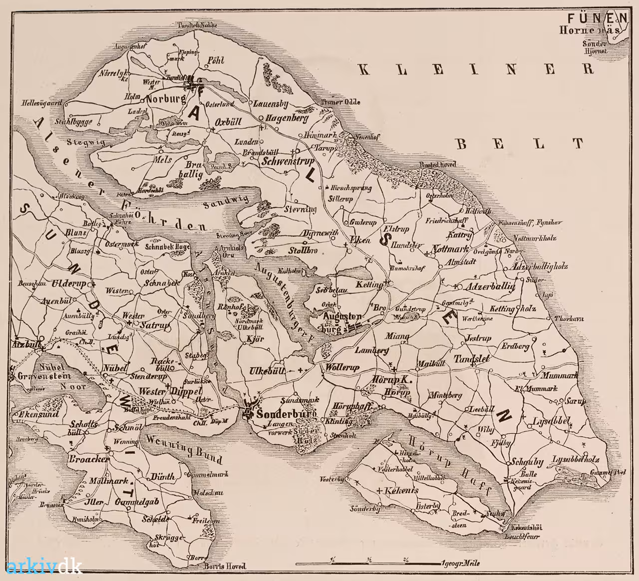 | Beskrivelse | Træsnit med motiv fra krigen 1864. Karte der Insel Als. Jvf. Taf. LXXXVIII i Illustrierte Kriegsberichte. Ikke optaget i ikonografien. |