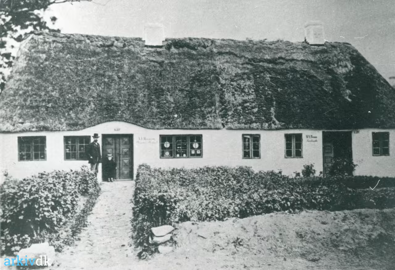 Beskrivelse | A.J. Marcussens urmager og guldsmedeforretning. Affotograferet postkort. |