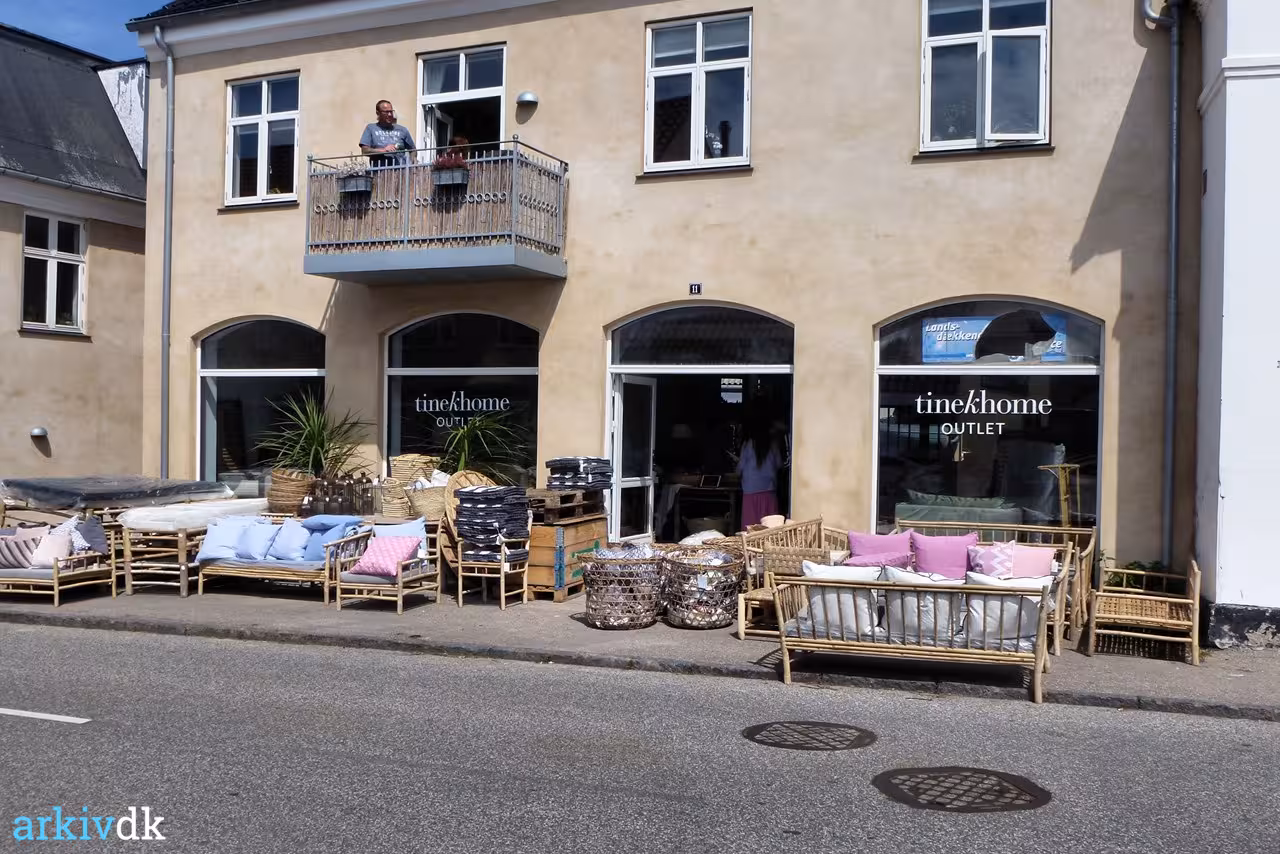 Beskrivelse Hovedgaden 11 med Tine K Home Outlet, som sælger møbler og boligtilbehør.