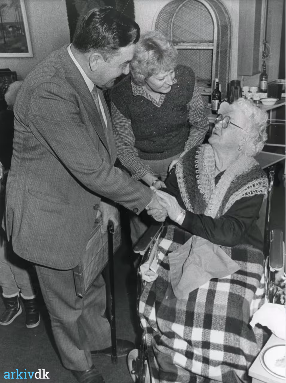 32 Strandjægerne besøger Halsnæs Centret. Det er formanden for Strandjægerne Frank Conradsen der spiser sammen med centrets ældste beboer Agnes Larsen. Uge 17/18 - 1996 Frederiksværk Ugeblad / Halsnæs Posten 9x12,5