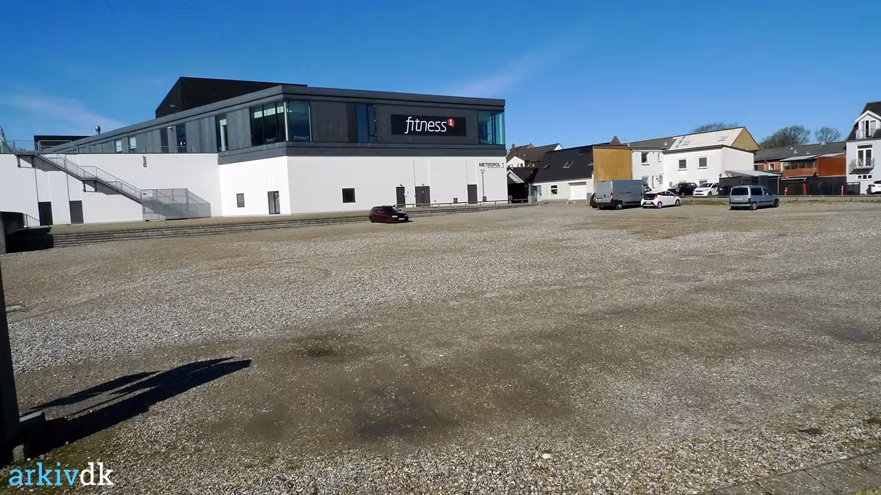 Beskrivelse Parkeringsplads ved Metropol Shoppingcenter, Hjørring, lørdag middag under Corona-krisen (Covid-19). Bemærk: p-pladsen er stort set tom.