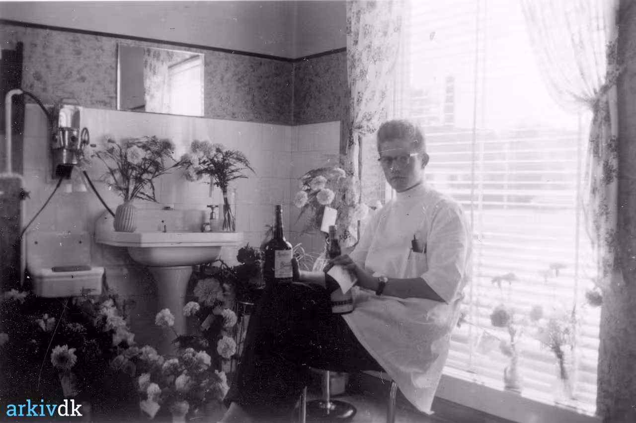 | Beskrivelse | Frisør Erling Bølle, Kærvej 6, 1952.
