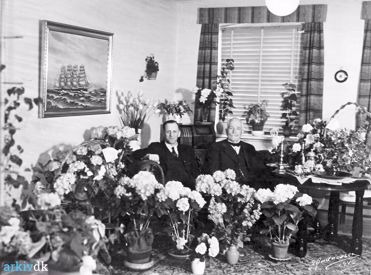 | Beskrivelse | Hesteslagterne Frederik Carl Christian Trebbien og Cajus Carl Christian Trebbien i privat hjem, omgivet af blomster. |