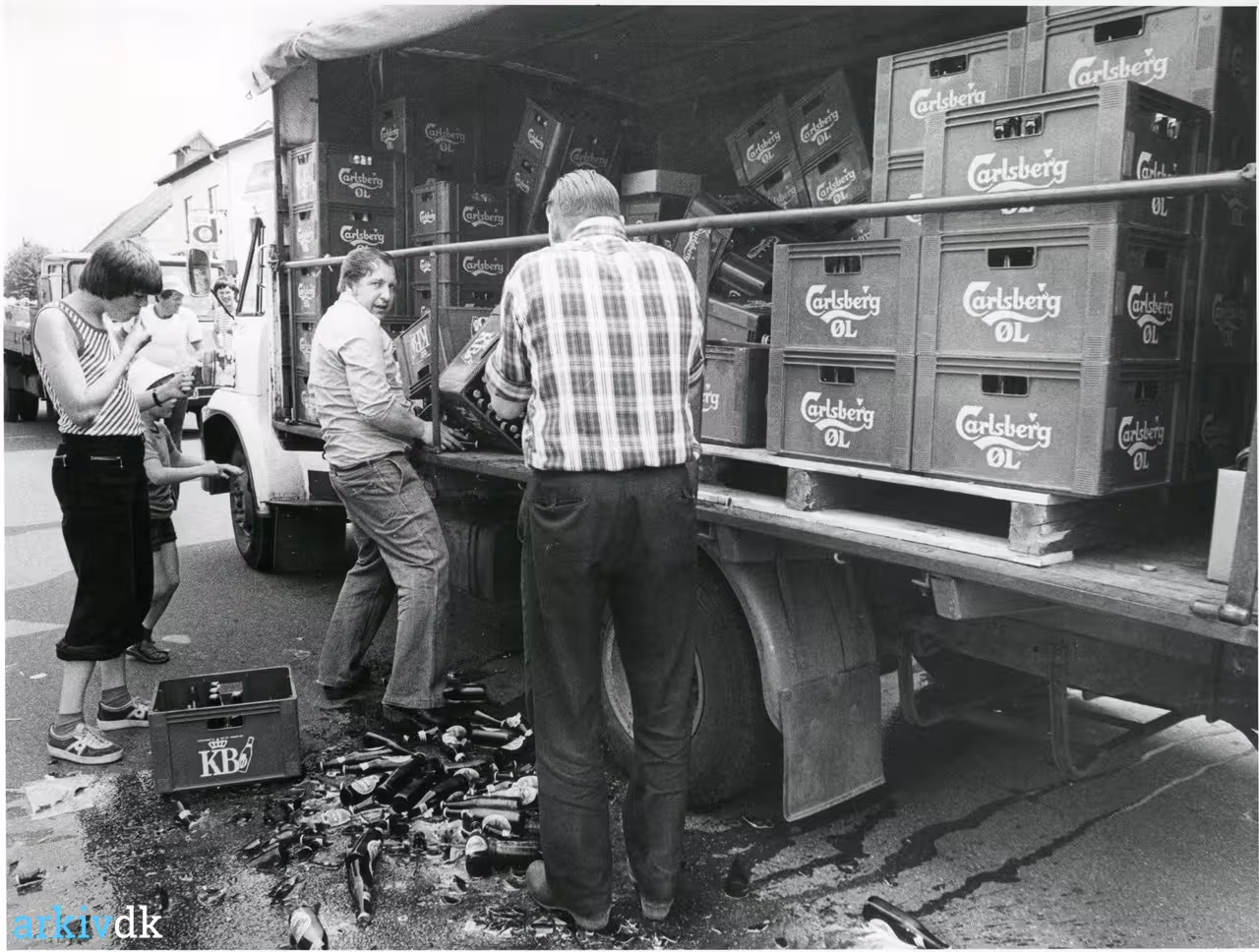 Beskrivelse Købmand Lars Larsen modtager en ny sending drikkevarer til festivalen