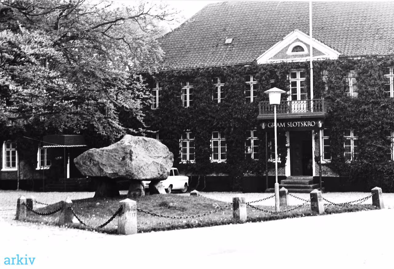 | Beskrivelse | Gram Slotskro. Genforeningssten opstillet som en stendysse, indhegnet med kæder ophængt i 10 gamle grænsesten, nr. 53, 25, 50, 17, 44, 39, 51, 40, 52 og 20. |