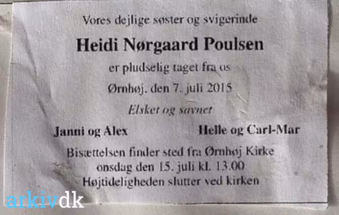 Beskrivelse Dødsannonce for Heidi Nørgaard Poulsen.