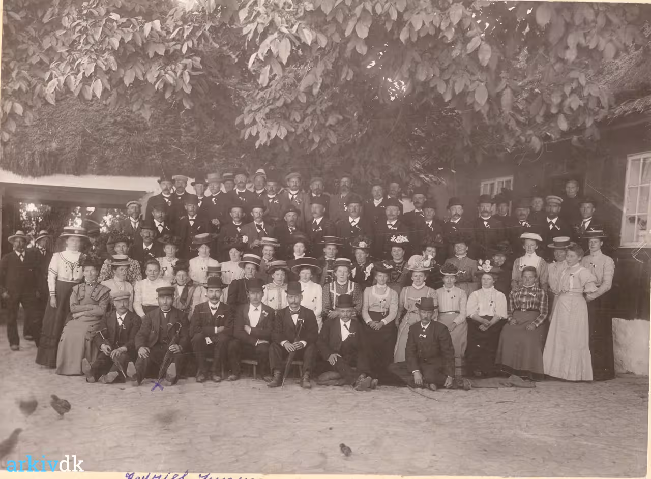| Beskrivelse | Husmændenes fællesrejse på Bornholm 1910. Som det kan ses, er konerne også med. På forreste række sidder Gabriel Jensen som nr. 2 fra venstre. |