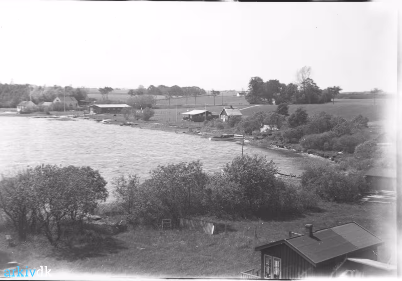 Beskrivelse Haraldsted Sø Med sommerhuse, Ringsted Roklub og Svømmeklubben i baggrunden