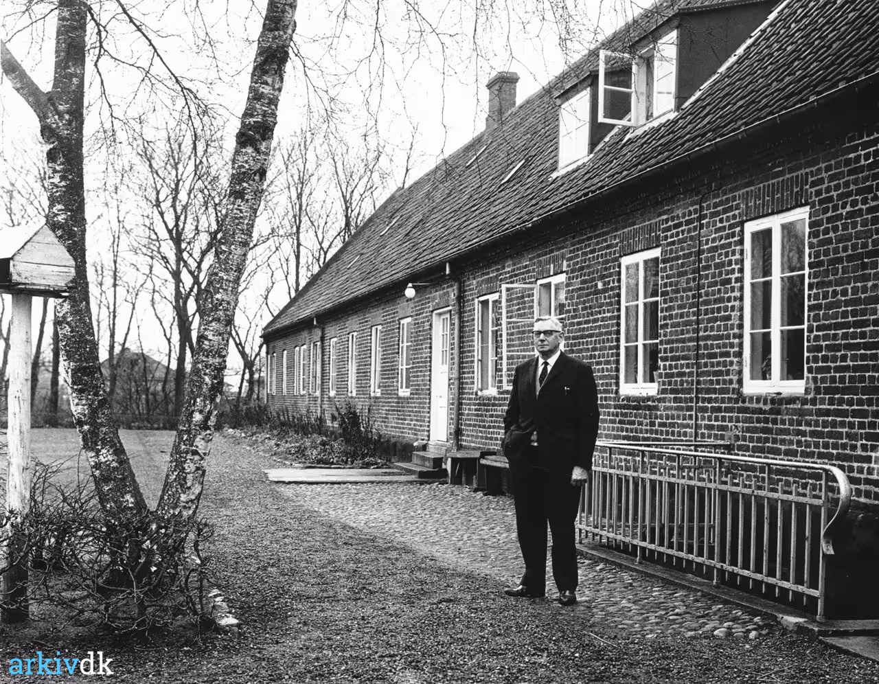 | Beskrivelse | Forstander Niels Thorvald Nielsen fotograferet i haven bag Forsorgshjemmet Skovvang. |