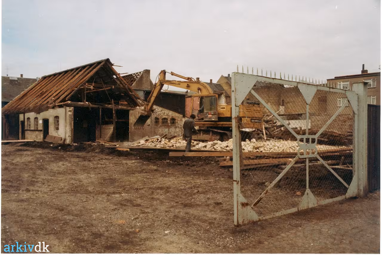 Brdr. Hillers' gamle bygninger, Løvegade 9-11, under nedrivning