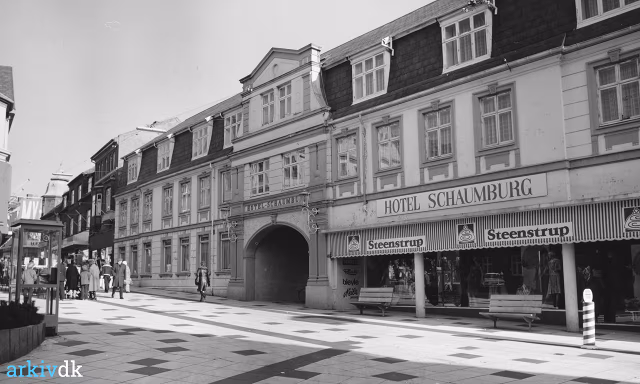 | Beskrivelse | Hotel Schaumburg, Holstebro. Steenstrups forretning i stueetagen under ombygning. Nielsen overtog forretningen efter Steenstrup. |