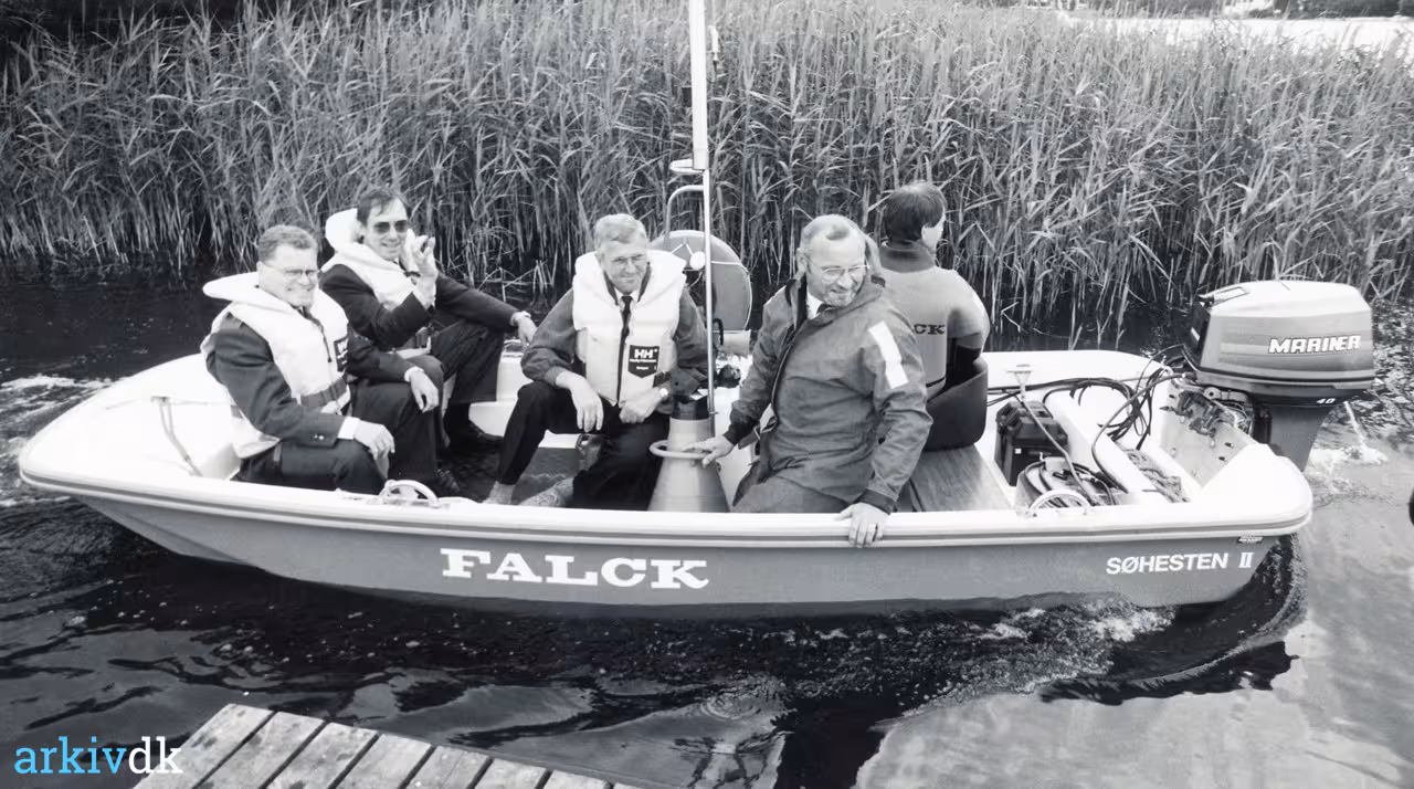 Vesterbrogade 57, Maribo Maribo stationen fik døbt den helt nye redningsbåd, der fik navnet Søhesten II. Ved præsentationsturen ses i båden fra venstre regionsdirektør Erik Falck, borgmester Finn Nielsen, kommunaldirektør Mogens Stryger, stationsleder Jørgen Petersen, redderen med ryggen til er Carsten Dreier |