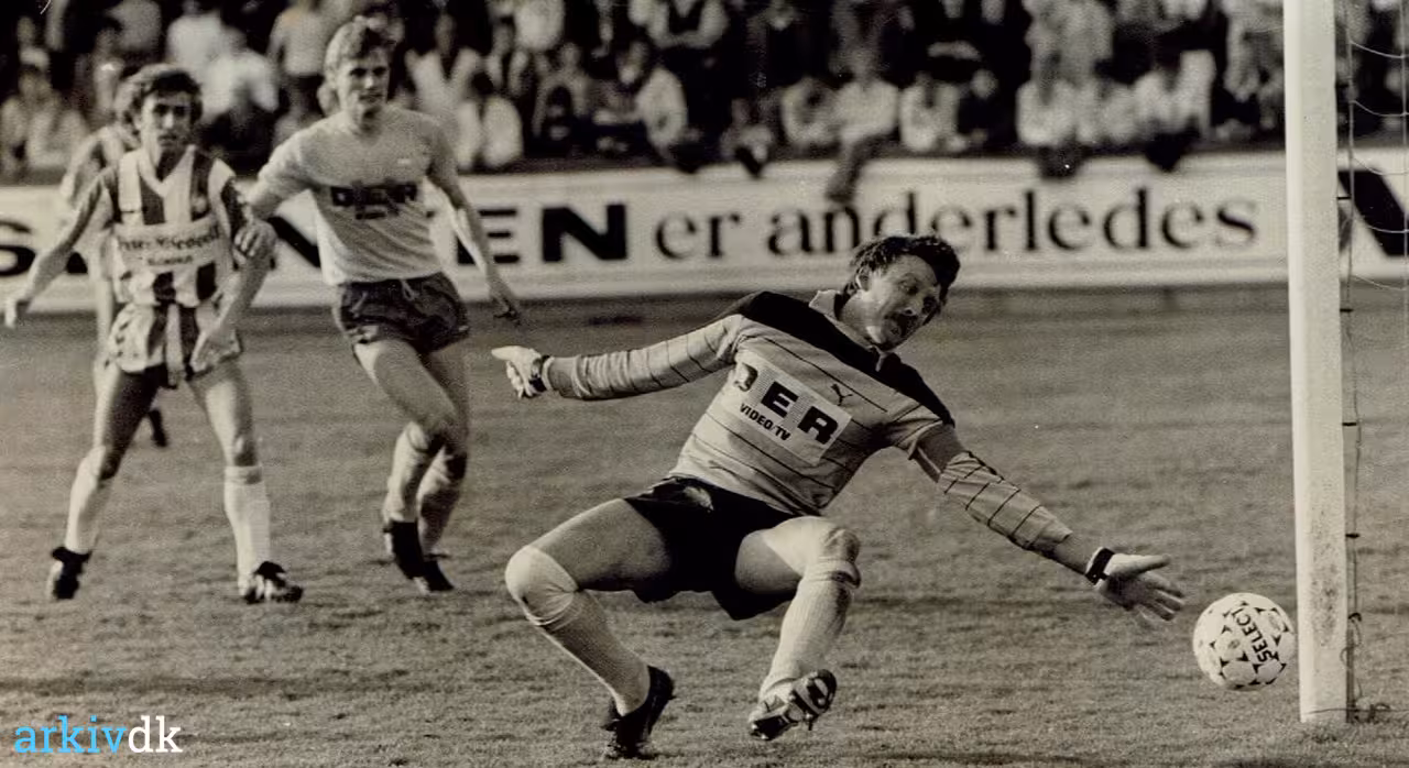 | Beskrivelse | Aalborg Boldspilklub. Til glæde for 9.600 glade fans fra AaB havde landsholdets målmand Ole Qvist en meget travl aften på kampen i 2. division på Aalborg Stadion. AaB-spilleren på billedet er Mogens Jørgensen og KB'eren er Jan Thomassen.