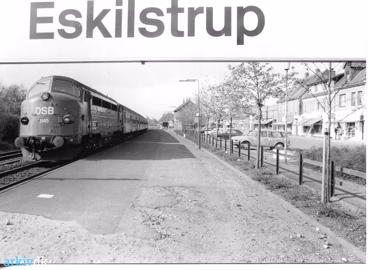 Eskilstrup station og Jernbanegade Tog nr. 1145 DSB