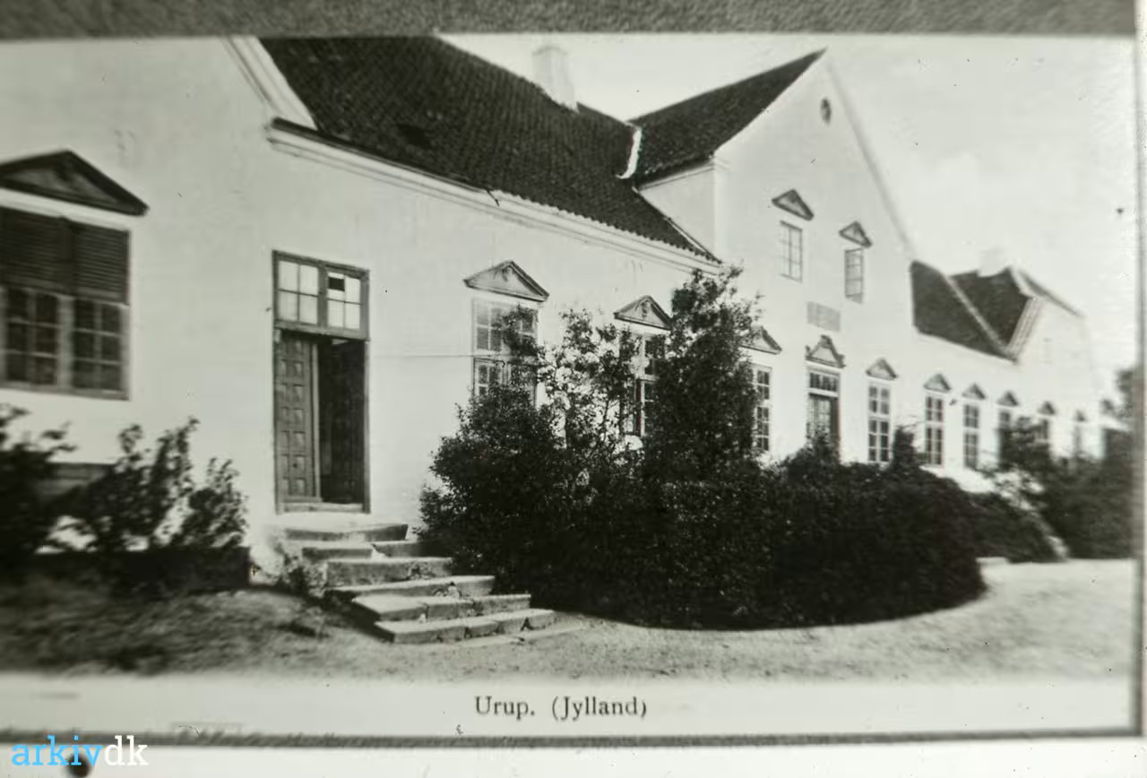 Bemærkning Urup Hovedgård tegning af Peder Skram Billede af bygning af lade 1896 Hovedbygning 1915" 1920" 1950" Billede af fru Sylvest i " kirkesalen ca. 1980