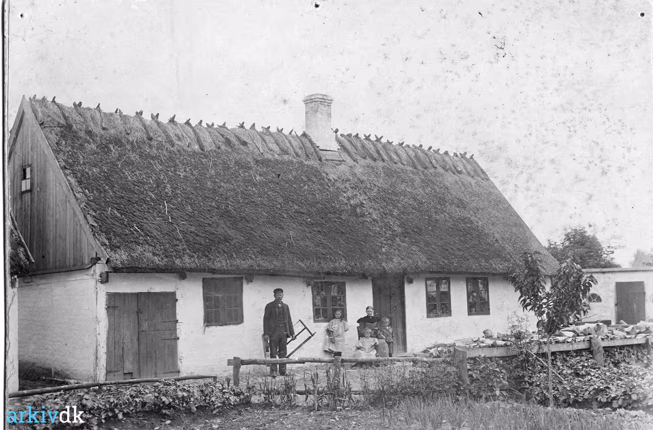 | Beskrivelse | Tømrer Hans Nielsens hus, Osted Kirkestræde 8, Matr.nr. 38a, Osted. Huset er stråtækt med bræddegavl.