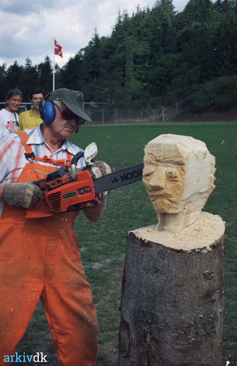 Beskrivelse I forbindelse med sommerfesten på sportspladsen i Gl. Rye vises der udskæring af træfigurer i træ.