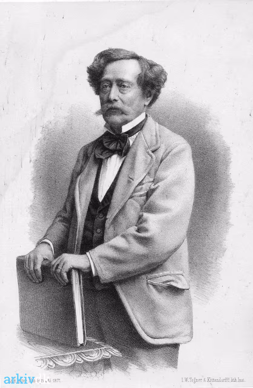 Portrætbillede af forfatter og digter Rasmus Villads Christian Ferdinand Winther (1796-1876) som i flere sommerperioder havde ophold på Krabbeslund ved Ejby