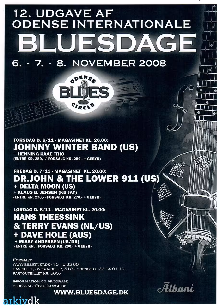 : Henning Kaae Trio - Johnny Winter Band - Klaus B. Jensen/ Poul Ewald - Delta Moon - Dr. John & The Lower 911 - Missy Andersen - Hans Theesssink/ Terry Evans - Dave Hole |