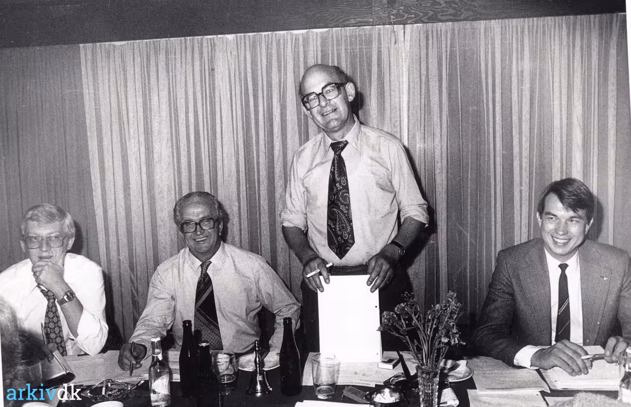 | Beskrivelse | Foreningsmøde i Fårevejle Hallen, Kalundborgvej 23, 4540 Fårevejle, hvor Svend Erik Madsen, Sema taler og 3 lytter med. Personer fra venstre: