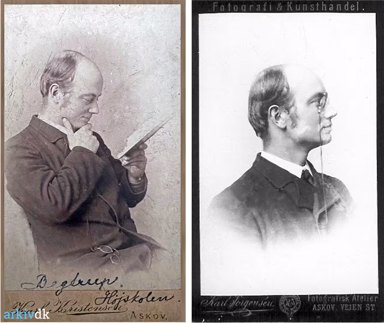 Det venstre billede er modtaget fra Eva Merstrand, hun skriver :Her er billedet. Jeg er lidt usikker på hvornår det er fra, men tænker det er fra da enten mine bedsteforældre eller oldeforældre mødte hinanden på Askov, men det hat jeg endnu ikke styr på.