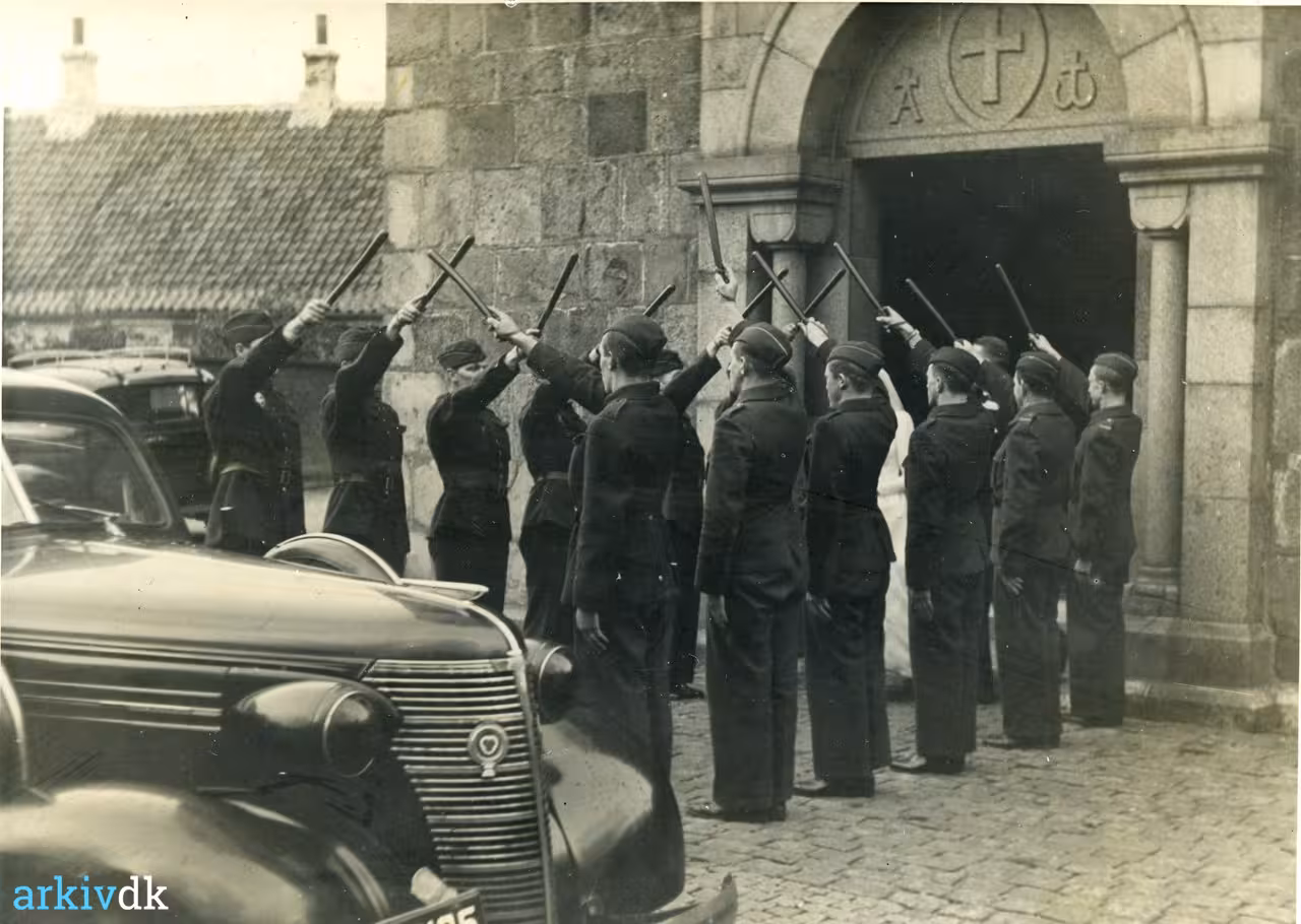 Espalier af CB ved bryllup, Jacobi kirke, 1942.