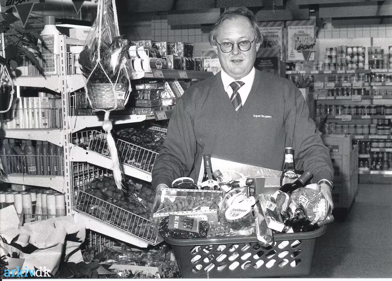 Beskrivelse Uddeler Aage Larsen fremviser en julekurv.