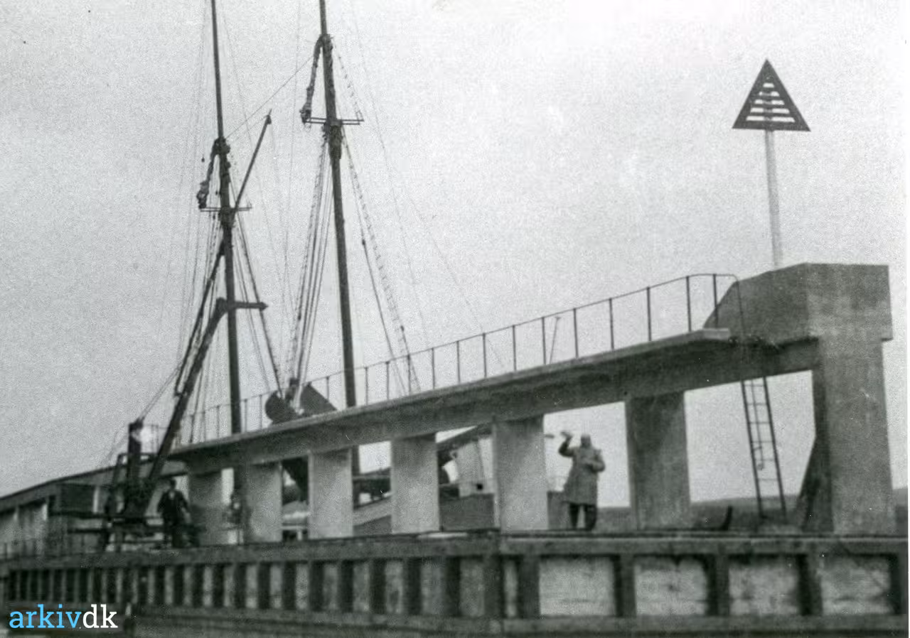 | Beskrivelse | Foto hvor man ser et skib liggende ved udskibningsbroen ved det Vestlige Molerværk på Fur afventende en påfyldning med moler |