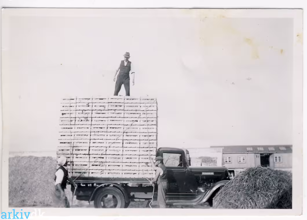 Der læsses blomkål i rammer. Det er fra det første år, 1937, hvor man pakkede blomkål i kasser.