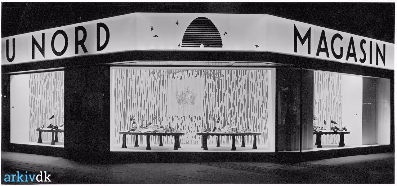 Bemærkning Indre By, Bremerholm, butiksvindue, varedisplay, varepræsentation, stormagasin, fodtøj, opsats, tableau
