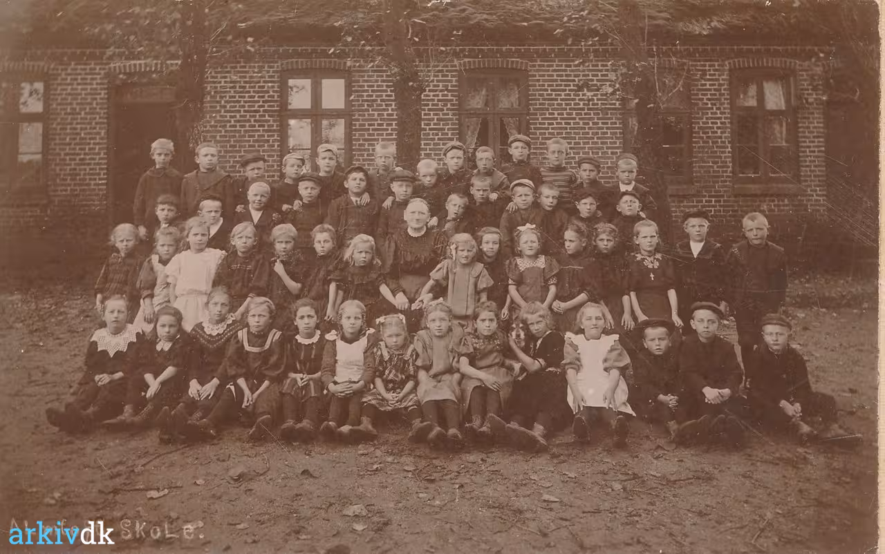 Niels Fisker (blev slået ihjel af lynet som barn) ukendt Jens Holmberg, Almtoft S. P. Mikkelsen (boghandlen) Aage Mikkelsen ukendt Peter Nielsen (Mausing) Bernhard Nielsen Poul Madsen (tromlefører Kjellerup) Henry Jensen Aage Nielsen Chr. Hermansen (Roslev) Anden bagerste række fra venstre: Ernst Leth (maler) Søren Bak (Søndergade) Jørgen Hermansen (Gl. Dalsgård) Poul Hoberg (mejerist på Fyn) Kresten Madsen (Almtoft) Niels Hoberg ukendt ukendt ukendt ukendt ukendt Ingvar Askgaard (kriminalbetjent i Rudkøbing) Holger Højfeldt (Kjellerup) Anden forreste række fra venstre: Emma ? Elvira ? Metha Petersen Josefine Høgfeldt (Levring) Vilhelmine Pedersen Louise Pedersen Krista Hoberg Frk. Christiane Egholm (lærerinde) Karen Levring (Lindberg) ukendt Marie Laursen Marianne Danielsen Elfrida Vellev ( født 19/1-1901) Mary Jensen Magnus Johansen (Duelund) Ejner Askgaard Forreste række fra venstre: Katrine Jensen Anine Katrine Jensen Martha Jensen Anna Nielsen (Maigaard) Rigmor Højbjerg Dagmar Hendriksen Tora Katrine Levring (Løkkegaard) Jenny Hedegaard Mette Bertelsen (gift Bach - med hunden Pasop) Agnes Madsen Ingemann Holmberg Alfred Holmberg Marius Espersen |