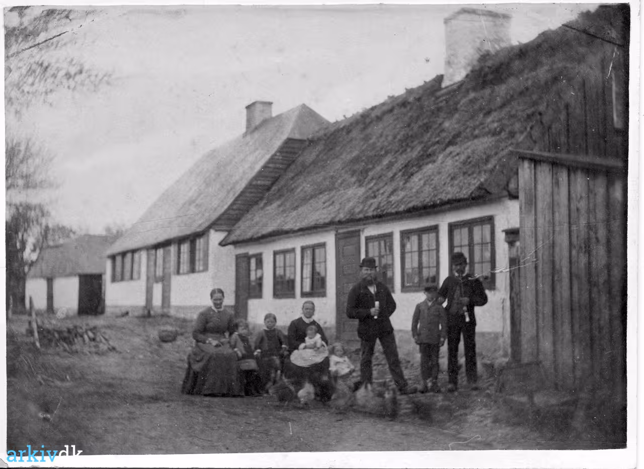 | Beskrivelse | Personer: NIELSEN HUSMAND OG HÅNDVÆRKERFAMILIE PÅ NÆRUM HOVEDGADE. Carl Andersen med familie foran skrædder Andersens hus
