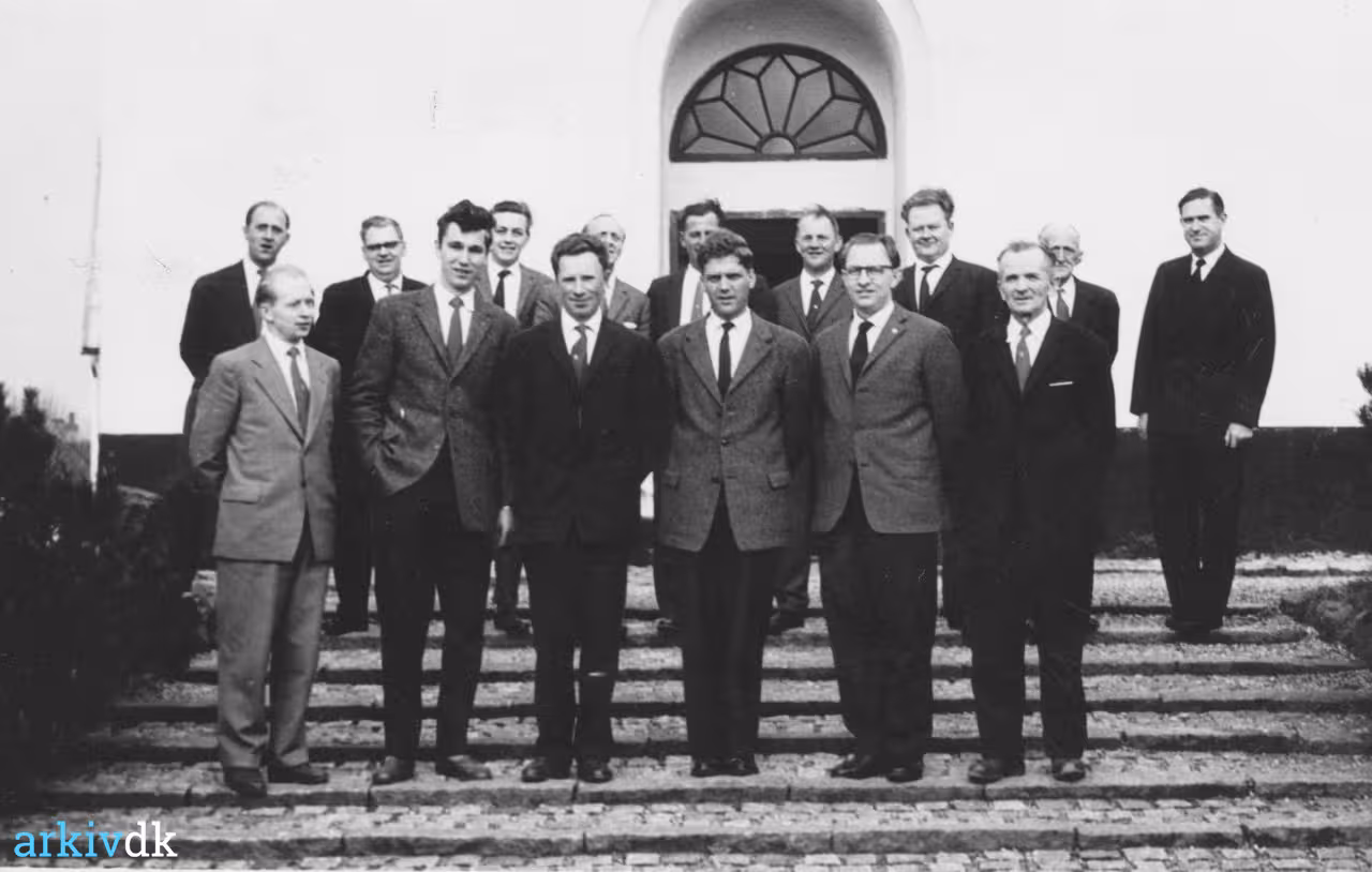 På billedet ses Carlo Andersen, Mathias Ravn, Helmuth Gabelgaard, Oluf Jørgensen og Gunnar Vadmand. Øvrige er ukendte. |