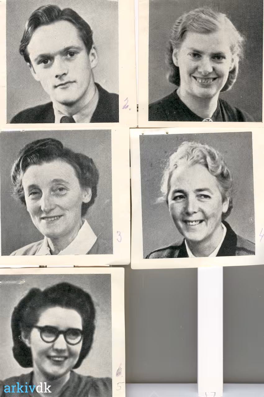 Nr. 1: Edith Skou gift med Vagn Skou Nr. 2: Bent Ryttergaard gift med kontormedhj. Rita Ryttergaard Nr. 3: Ellen Castberg gift med overmontør Castberg Nr. 4. Fru Samson, gift med ing. Samson Nr. 5: Esther Hansen gift med arb. mand Holger Hansen |