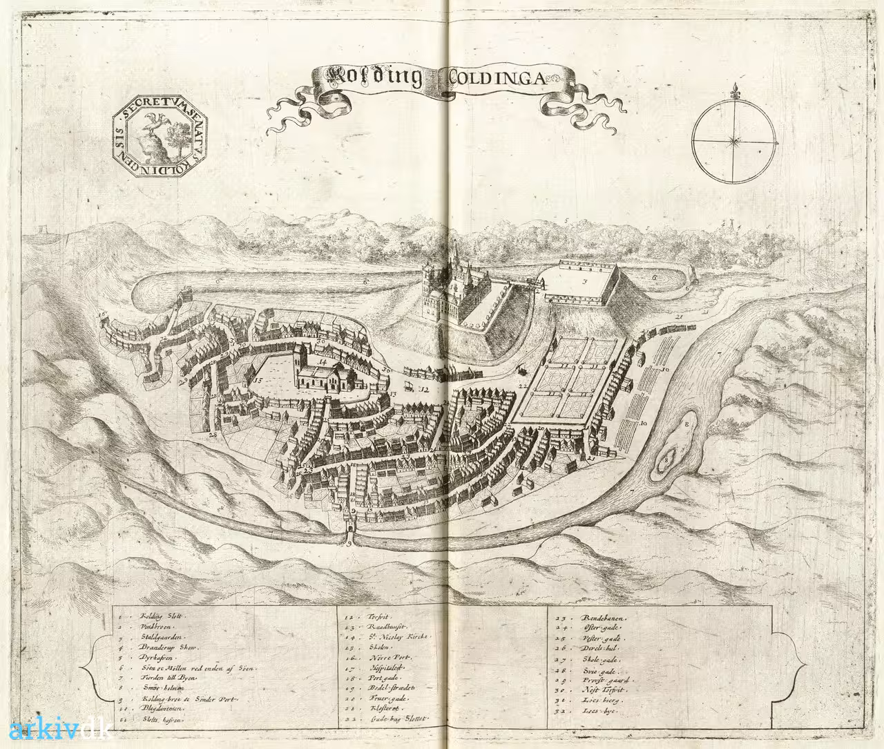 Beskrivelse Kort over Kolding by med list over steder i bygen