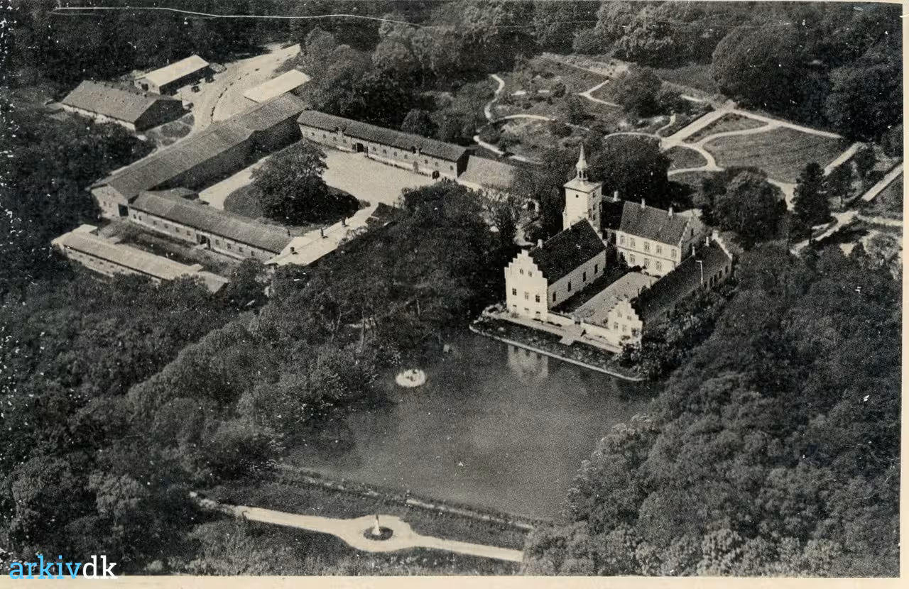 Beskrivelse Højris med avlsbygninger og slottet.