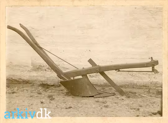 Beskrivelse Foto af en gammel plov, taget omkring år 1905