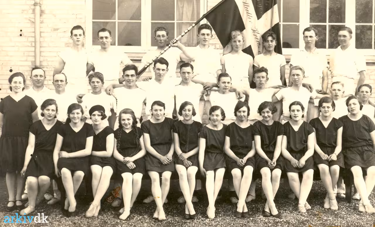 En af gymnasterne er Charly Holm. Han står formodentlig som nr. 2 fra højre i midterste række. |