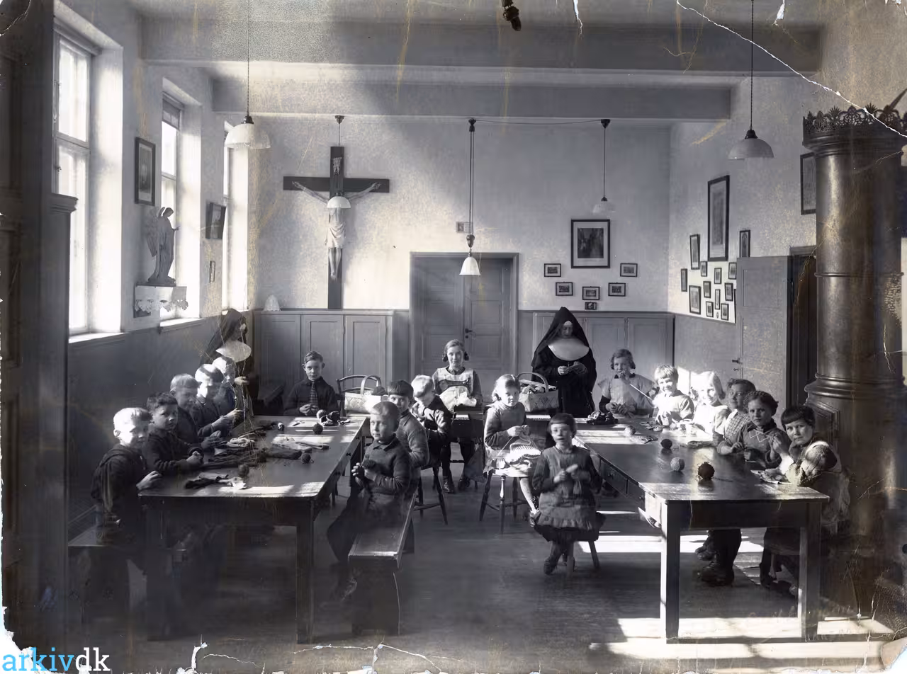 Beskrivelse Nonner og børn i det Katolske børnehjem i Jernbanegade