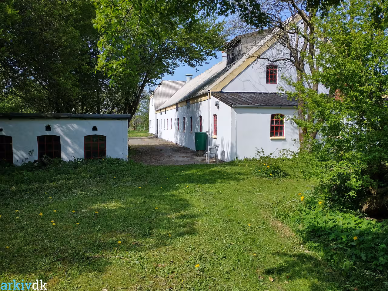 Beskrivelse Det gamle hønshus og staldgavl ses.