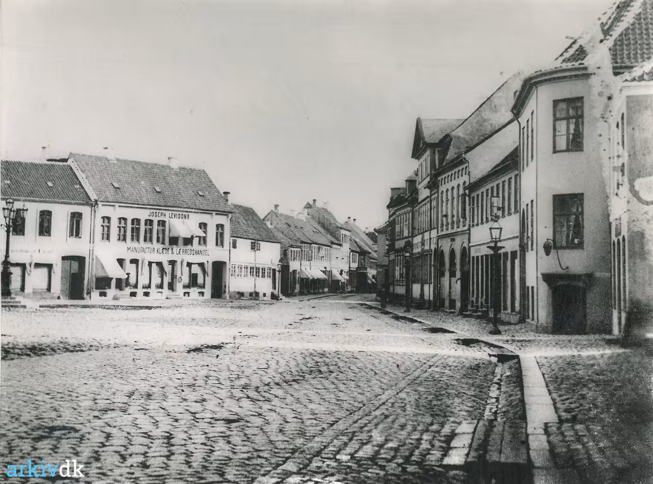 Beskrivelse Axeltorv 2-4, til højre husrækken 1-9, i bunden af billedet de første huse i Søndergade