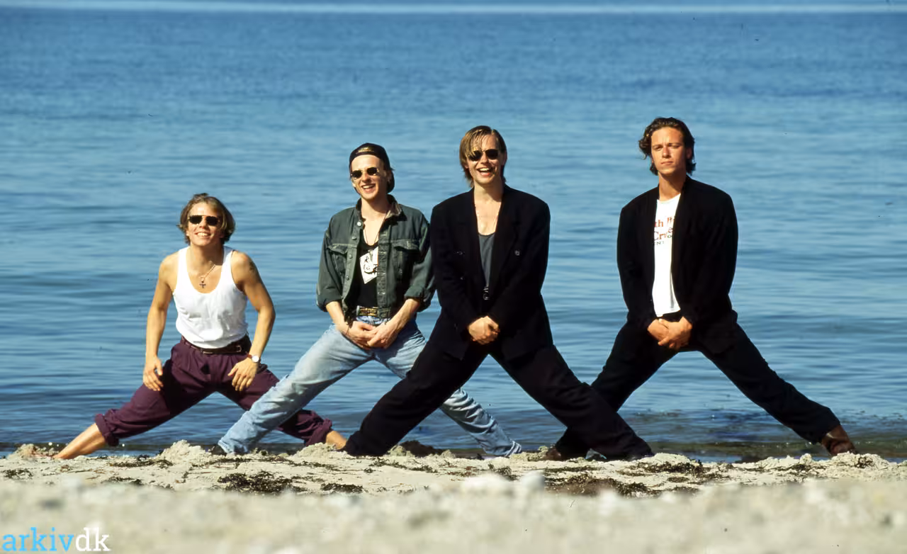 Beskrivelse Det odenseanske band Fielfraz på Knudshoved ved Nyborg. Fra venstre Kenneth Priisholm, Jens Langhorn, Claus Hempler og Nils Brakchi.