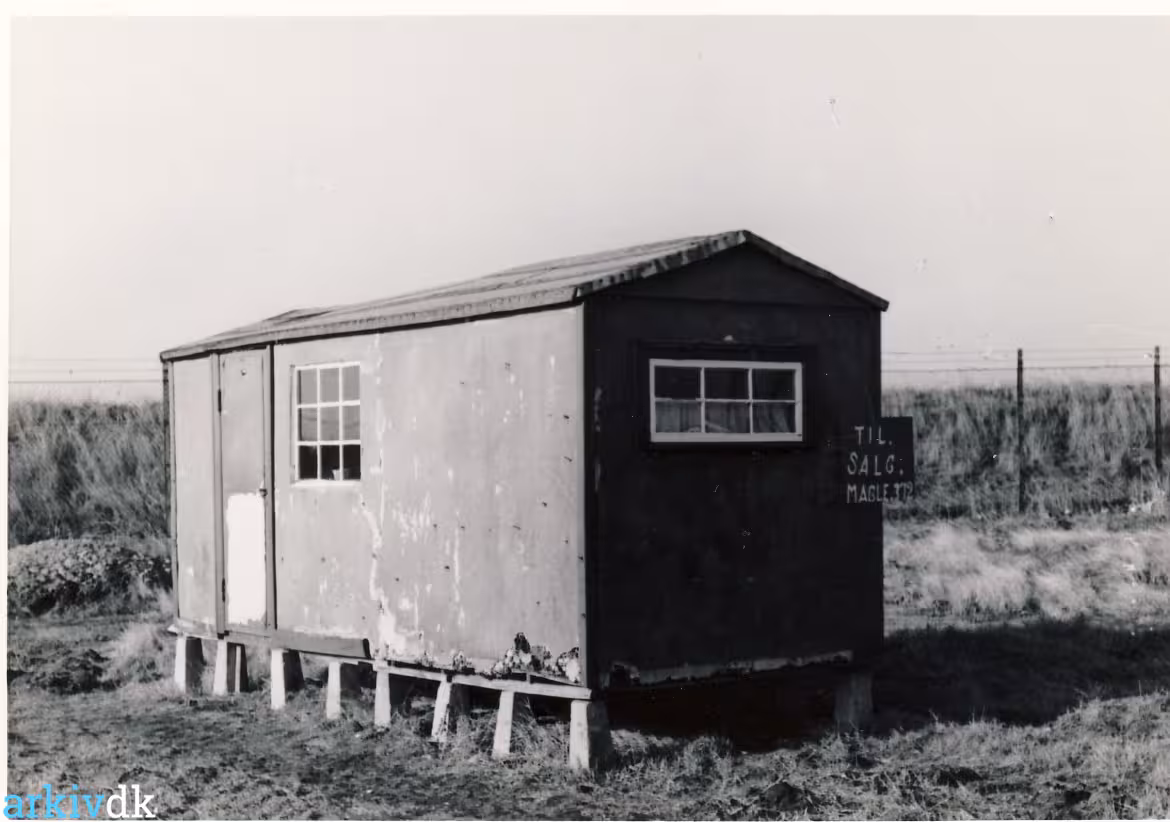 Skilt: Til salg Magle 379. Vestamager med sommerhuse nogle blev brugt hele året. I 1960 købte Kofoeds skole en lille ejendom på Rhodesiavej. Her åbnedes i marts 1961 en filial af hjemmenes afdeling og i et par år udførtes et godt stykke arbejde i dette udviklingsområde. I 1963 blev ejendommen afhændet til Tårnby Kommune. |
